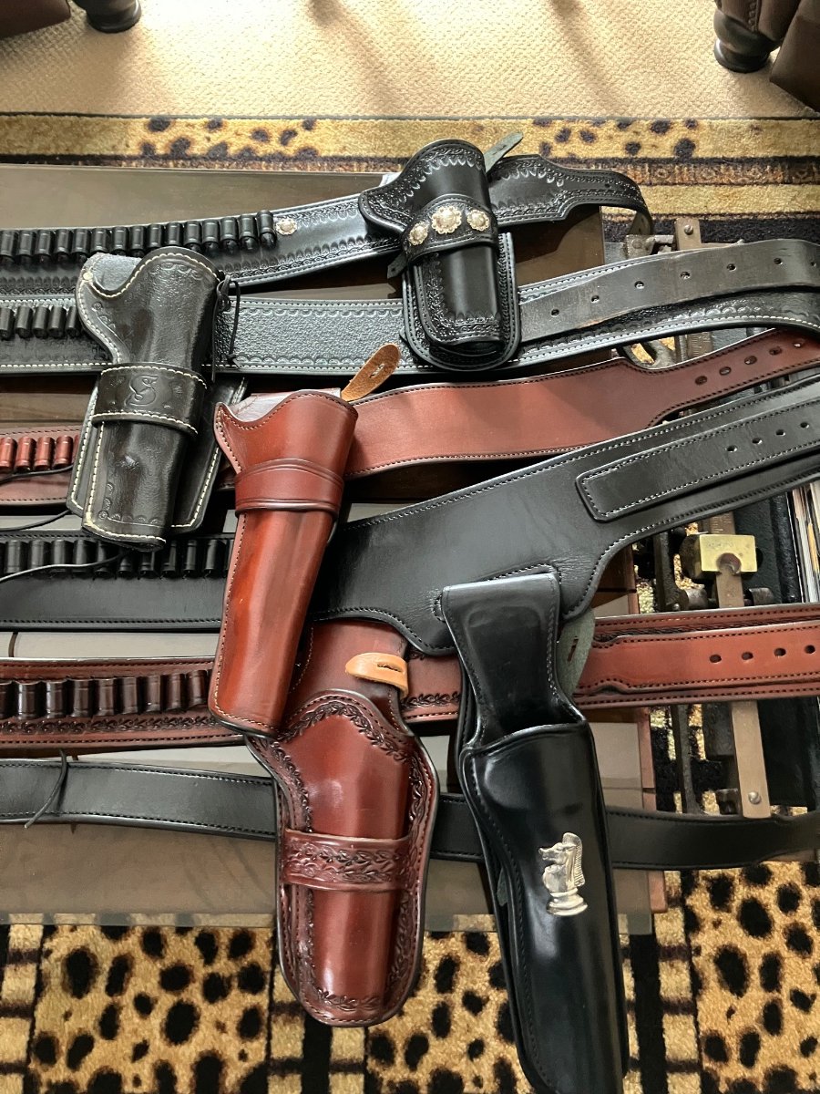 Good morning everyone, My father’s obsession with the old West, Cowboys, and single action revolvers was out of this world. Due to his health, he was unable to fire any of his firearms, but that did not slow his obsession for collecting. He has since lost his battles to cancer, and I am just getting the courage to go through what’s left of his collection. My great father and best friend has been lost. His guns and Spurs have been sold, to pay for medical bills. What is left is his collection of holsters. they all appear to be made from Fontier gun leather, and have never been worn outside the house. Any help or opinion on what I need to do to sell these. I would just like to see them go to a good home. Someone whose passion for the old West was that like my father’s. I would like to sell these at a fair price to someone that can use, and appreciate them. Thank you all for your help in advance, Mark