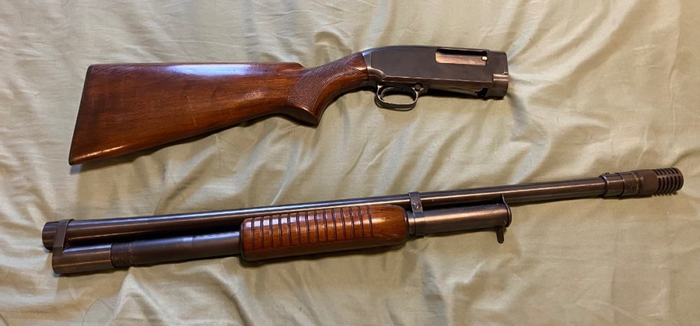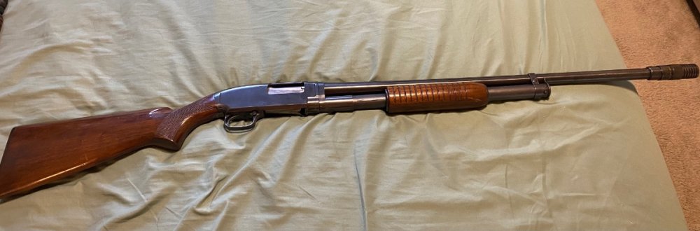 I have a Winchester Model 12 in 12ga. that I bought hoping to get into Wild Bunch but as I’ve mentioned before, health is going to prevent that. This is a 1948* modelwith a Cutts Compensator. Its in pretty good condition bluing mostly there wood looks great for age and action is tight Plenty of room to cut off Cutts and make a good Wild Bunch gun just like Bo Hopkins. Asking $650 shipped toyour FFL.