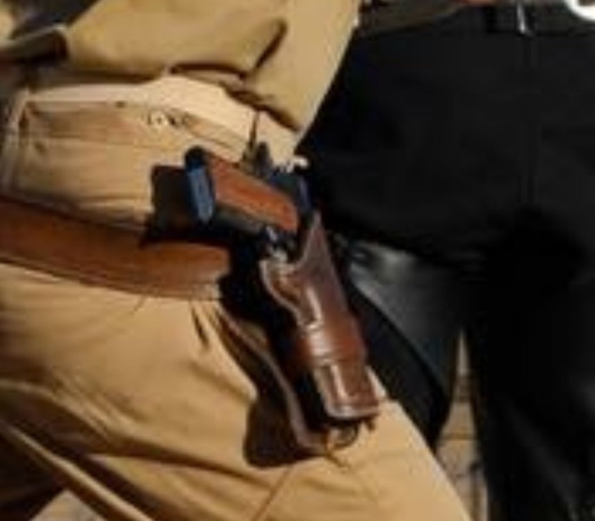 I’ve worn a tied down holster since I started shooting Wild Bunch. And no one ever said a thing. But that was when common sense ruled.