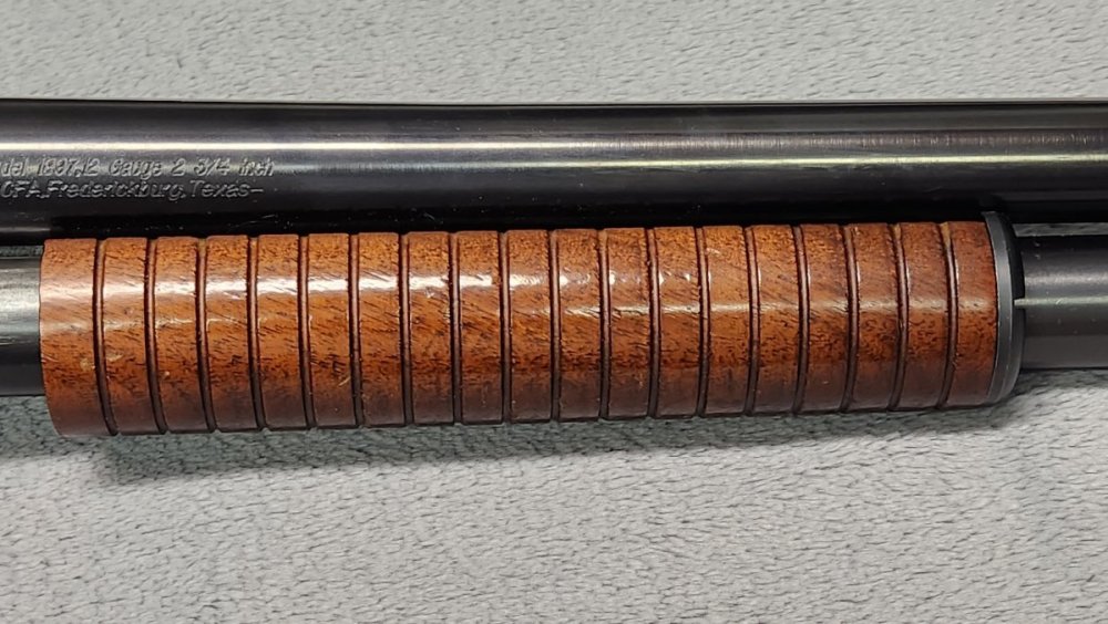 7. IAC 1897 Shotgun for Sale (FS) $550 shipped in continental US to your FFL or $500 if pickup in DFW Texas US postal money order or cash. I have used it for both Cowboy Action and Wild Bunch holds 6 rounds. Runs good for me, 6 Wild Bunch silver conchos good. Cart dings and wear shown in pictures