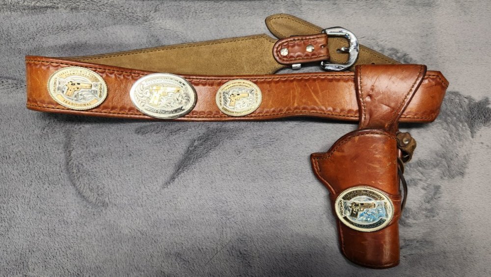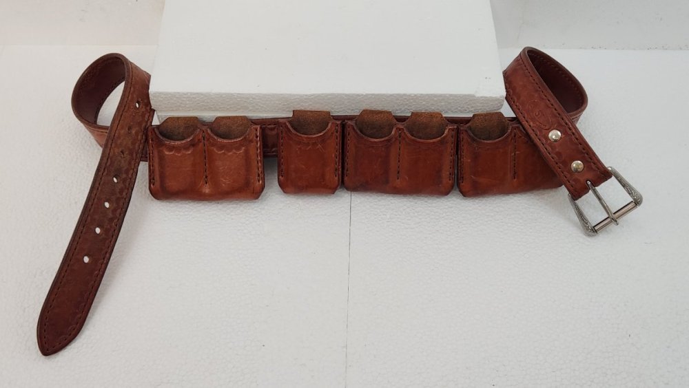 6. Not monitoring the forum call me 4six9 six00 528four to make a deal Gun belt and holster, Pants/magazine belt with 7 mag pouches, and belt pouch. Gun belt 44” from buckle to middle hole. I wore it on my hips below my pants belt. Pants belt 42.75” from buckle to middle hole. If the belts are to long for you a Leather Smith could shorten them. $650 shipped in continental US or $600 if pickup in DFW Texas $450 shipped in continental US or $400 if pickup in DFW Texas $350 shipped in continental US or $300 if pickup in DFW Texas US postal money order or cash. A similar Kirkpatrick Leather Holster, belt and 2 double magazine carriers is running $580