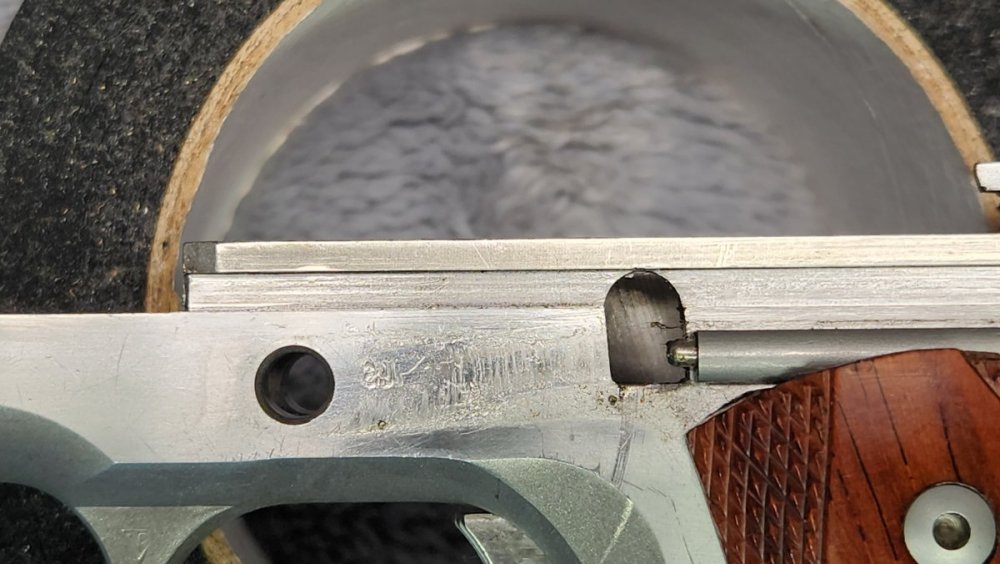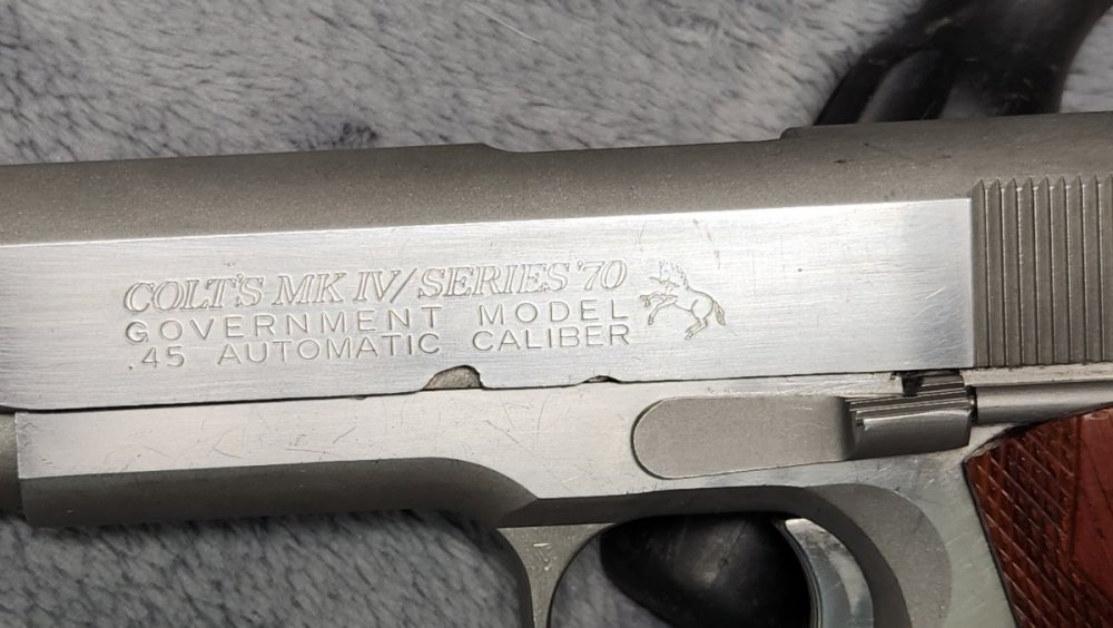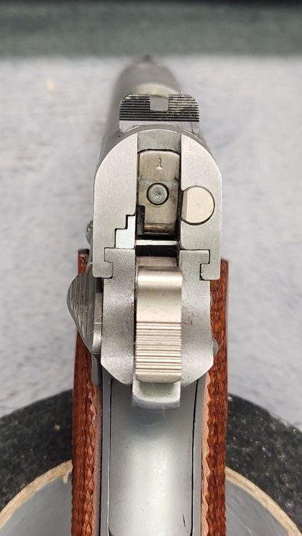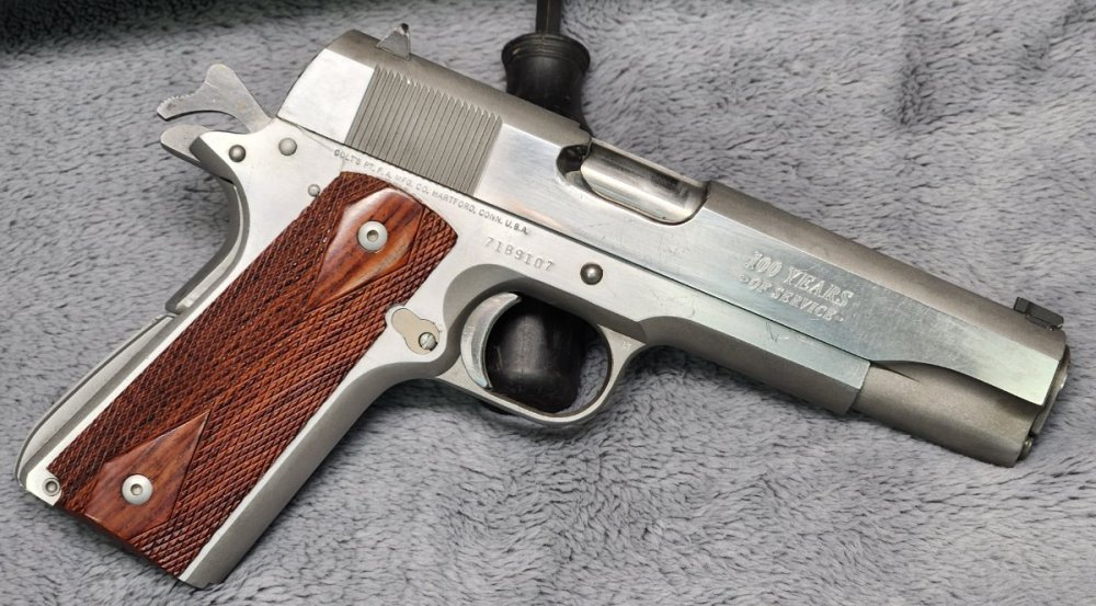 11. Due to health issues is am not able to shoot my 45 ACP even with Wild Bunch loads. Will be shooting WW1 3-Gun with a Ruger 22-45. For Sale asking $1,200. Colt Government Series 70 --- 100 Years of Service --- commemorative. Used to earn 8 Wild Bunch silver first place conchos. Used a lot but never put away wet. It’s a winner. Comes with one colt 7 round magazine Last picture is of the area underneath the slid stop where the most wear occurred. Work done: Opened up the ejection port because it was destroying the brass. Goatneck Clim started the work. Installed a SASS Traditional Legal rear sight, Harrison Design "HD-003 S/U Retro rear sight." Tuned for Wild Bunch: Recoil 42413 13 LB Hammer 26317 17 lb Plunger tube Spring Magazine Catch 26243 #3 Sear Spring 30201 Please PM me if you’re interested so we can work out details. No trades - US Postal Money Order or cash. Buyer pays actual shipping and insurance cost to your FFL. Face to face buyer must have a current License to Carry (LTC) (CHL)
