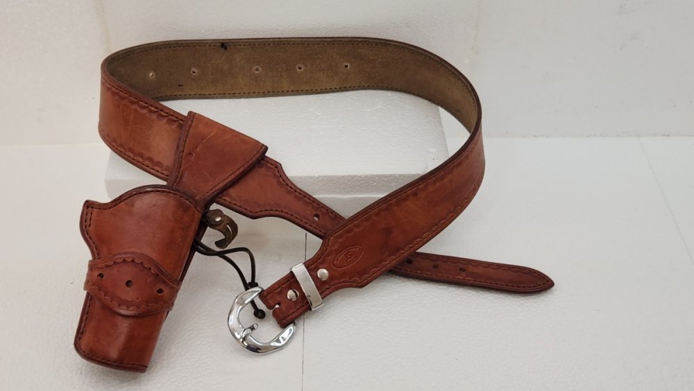 4. Gun belt 44” from buckle to middle hole. I wore it on my hips below my pants belt. Pants belt 42.75” from buckle to middle hole.