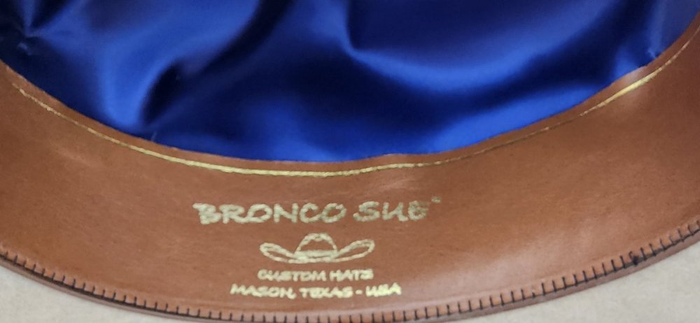 1. Bought from Chip Edmiston at Bronco Sue in 9/2022 Spoke with them to get some details 10X Rabbit & Beaver materials (felt hat) Color Seria Size 23.25 or 7” 3/8 Adding some pictures of the hat band. https://broncosue.com/